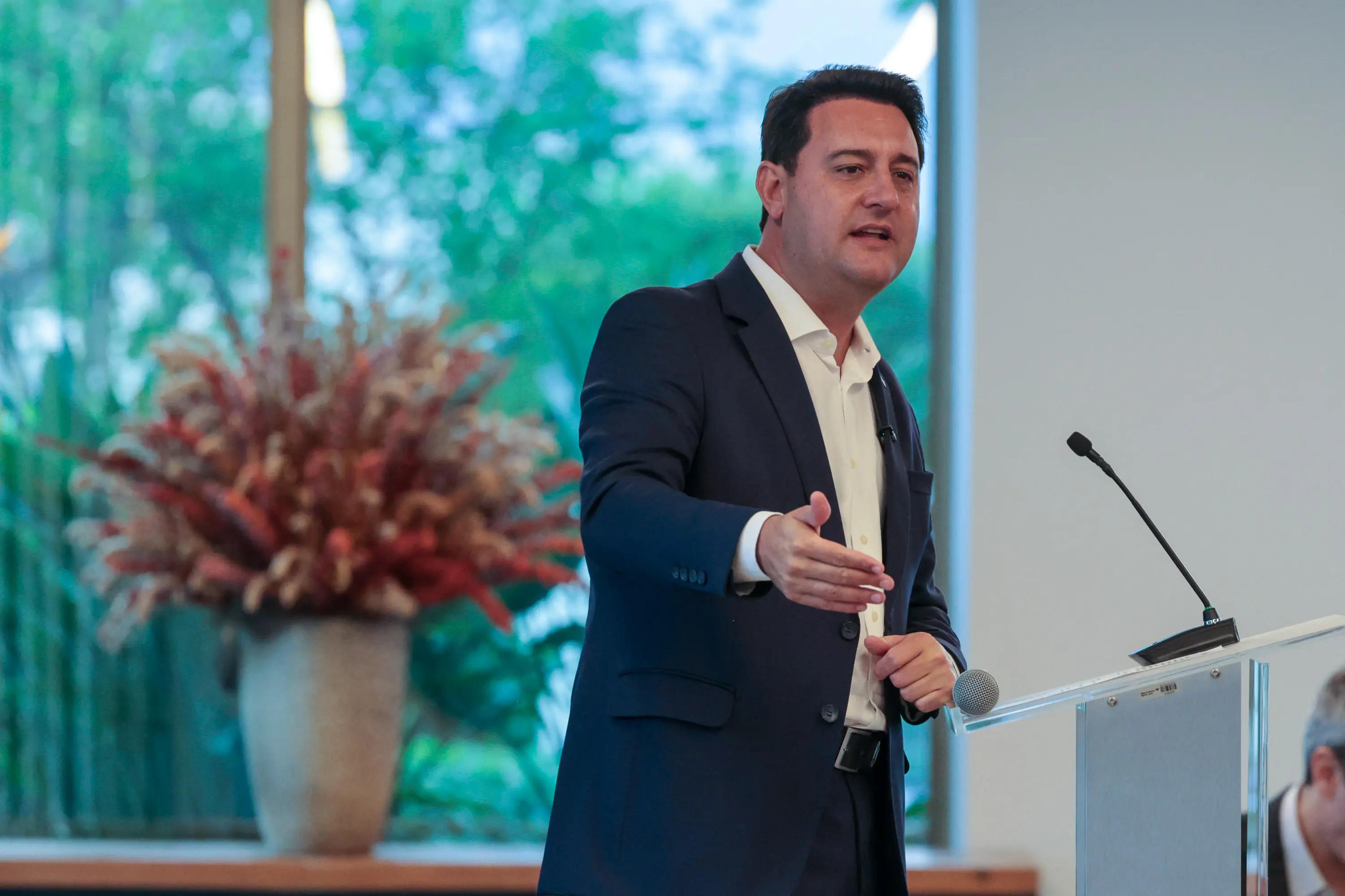 “Quando o Estado reduz a máquina pública e para de incomodar quem quer produzir, a economia cresce”, afirmou. Ele citou como exemplo o programa Descomplica Energia, que reduziu drasticamente o tempo para liberação de licenças ambientais para usinas de energia solar, biogás e eólica, passando de prazos que chegavam a dois anos para liberações em poucos dias, com segurança jurídica.