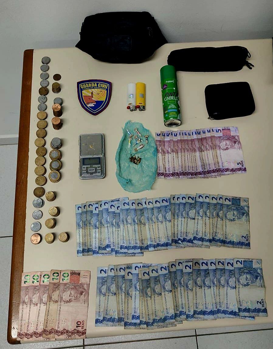 Várias pedras de crack, uma balança de precisão, dois isqueiros e dinheiro trocado foram encontrados no interior do estabelecimento comercial. Parte da droga estava embalada e pronta para ser comercializada.